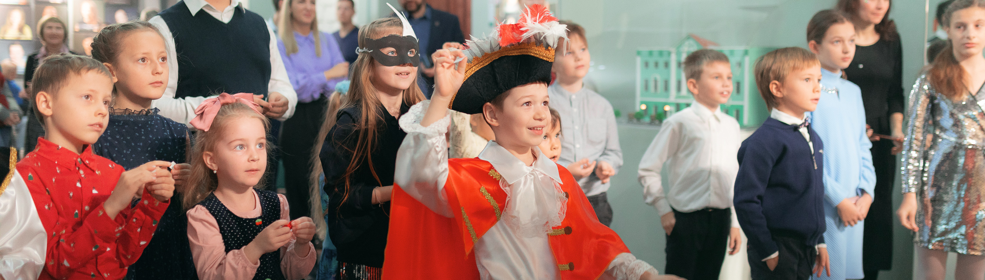 С уважением к театральному этикету и с учетом праздничного повода, все пришли невероятно красивыми и нарядными, а детвора и вовсе облачилась в костюмы любимых сказочных героев. Не успели мы согреться с уличного мороза, как на встречу к самым маленьким участникам мероприятия, как по волшебству вышли: шут, принц и фрейлина. Они моментально приковали к себе внимание и детей, и взрослых. И так как главный сюжет повествования о тайне королевы Берты происходит в замке, то юному зрителю было предложено разучить придворный танец и освоить дворцовый поклон для настоящих принцесс и принцев. Как завороженные, дети повторяли за актерами, улавливая каждый их жест и движение, следуя бальному ритму музыки. А еще были щедрые предсказания на грядущий год в стихах от романтичного поэта и забавные задания от веселого шута.